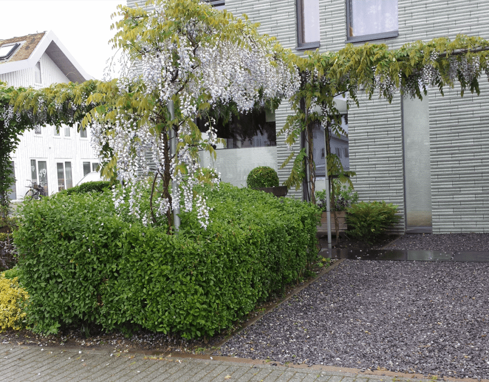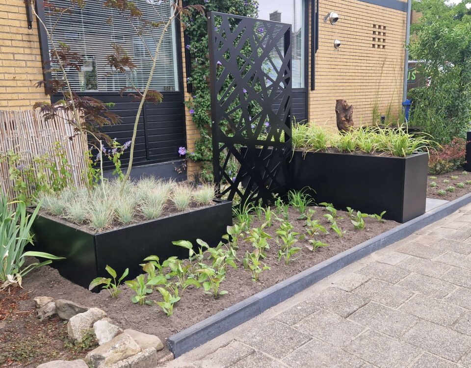 oktober 20, 2025Moderne voortuinDeze voortuin bestaat uit zwarte plantenbakken met grasachtige beplanting. De […]